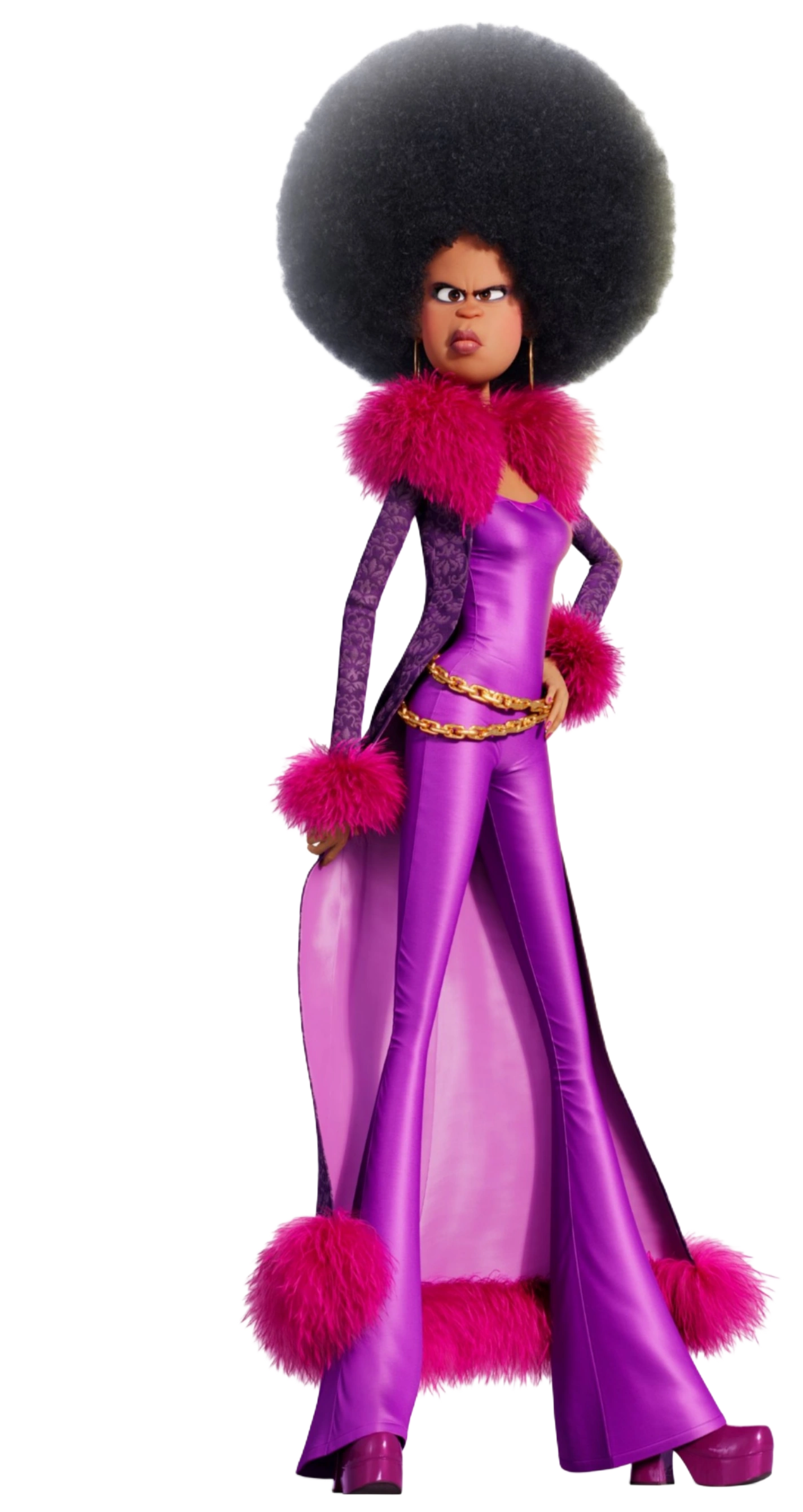 - She is a parody of '70s pop culture, so her actions are constantly played in an over-the-top manner. Even though she does get taken seriously later in the film, she still has several comedic moments, such as getting miffed by Marlena Gru and her defeat and rebuking of her teammates as a mouse.